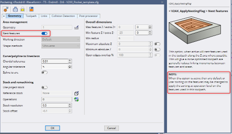 Aumenta l'efficienza con questa nuova opzione nella nostra tasca a 2,5 assi. Automatizzando l'ordinamento delle caratteristiche del gruppo nidificato di lavorazione, riduciamo i decollo e le rapide.